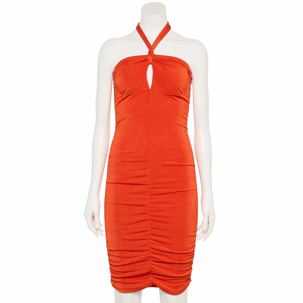 This juniors’ ruched bodycon dress from Almost Famous is the perfect addition to spice up any wardrobe.