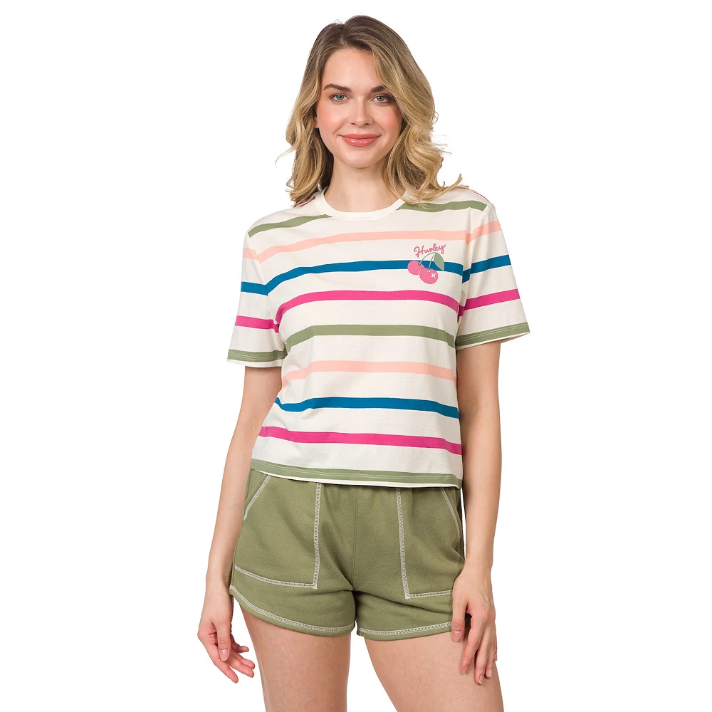 Get a casually cute and comfortable look in this juniors’ striped cropped tee from Hurley.