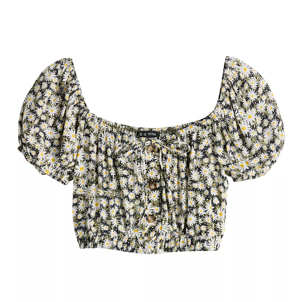 Cute and carefree. You’ll simply love the look of this juniors’ button detail short sleeve top from Lily Rose.