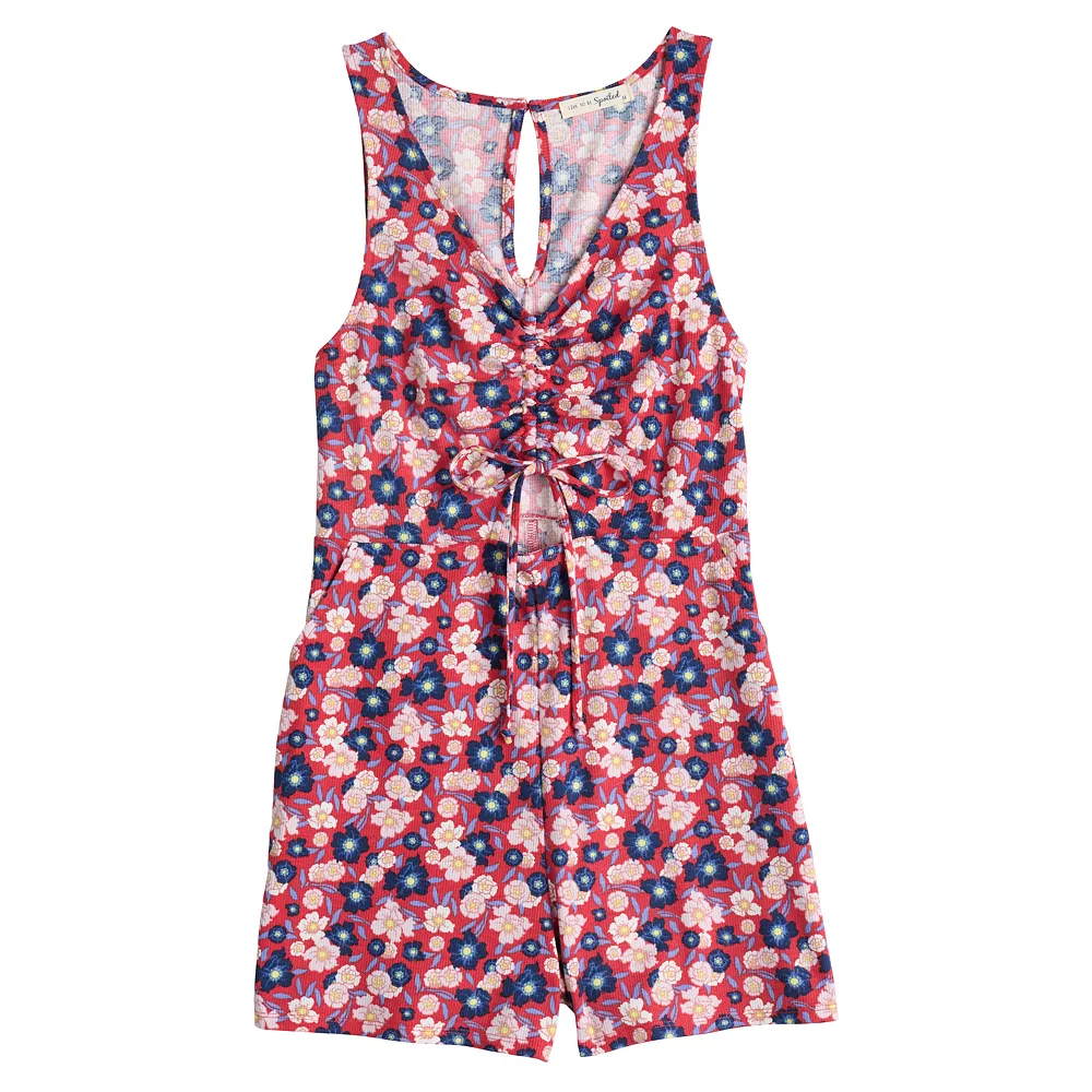 Display your fashion sense with this juniors’ ribbed romper from Live To Be Spoiled.