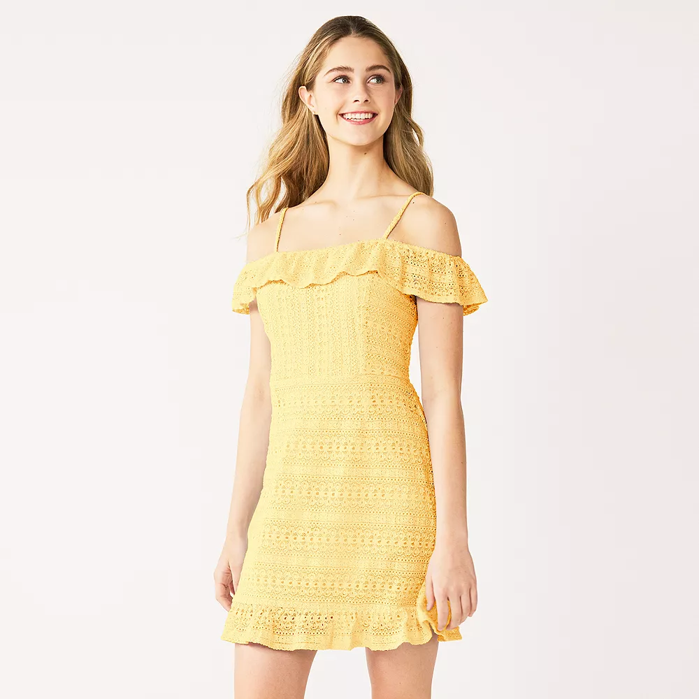 Delightfully casual. This juniors’ Live To Be Spoiled skater dress gives you a cute, laid-back look.