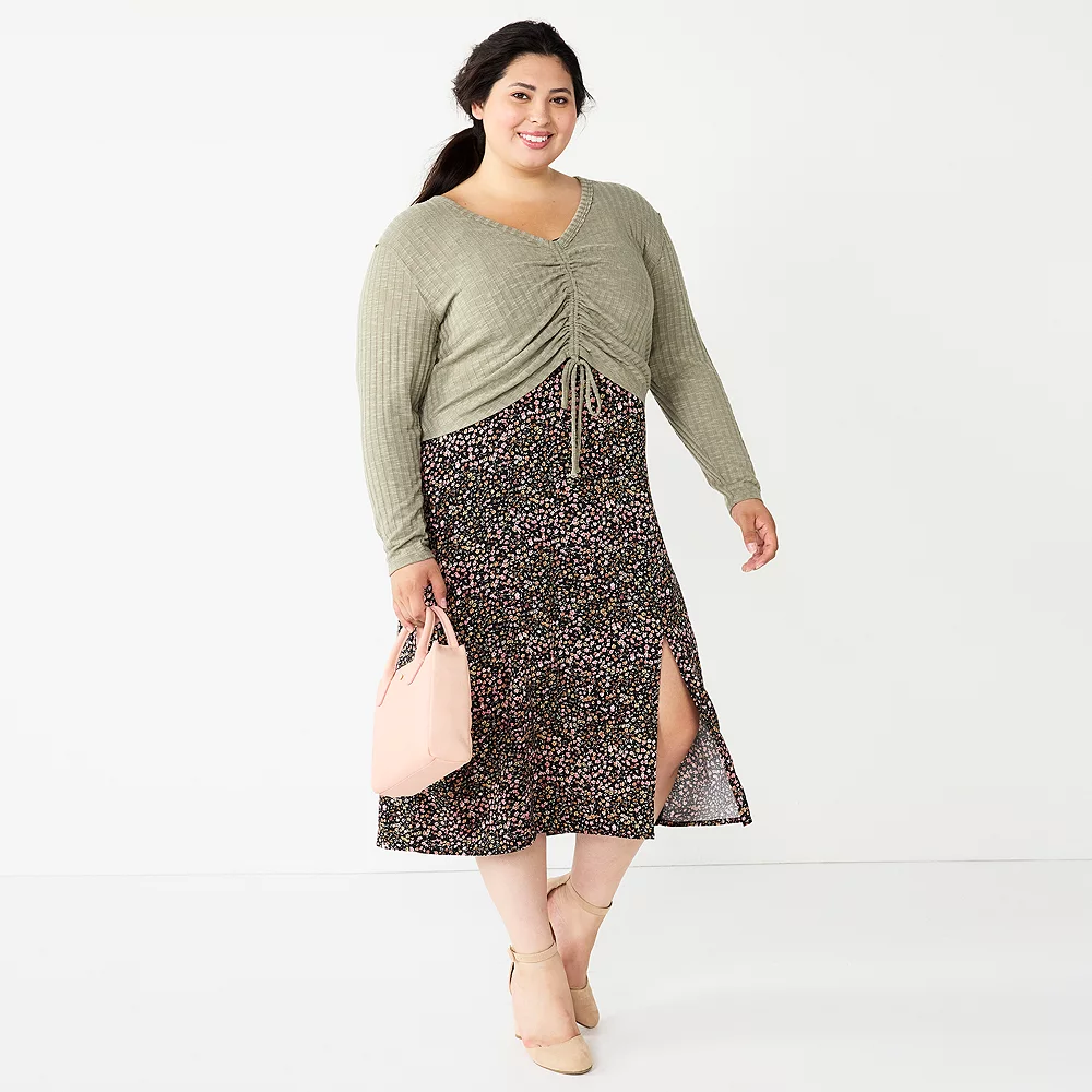 This juniors’ dress set from WallFlower features a cropped, ruched cardigan and a matching midi dress, making putting together an outfit a piece of cake!