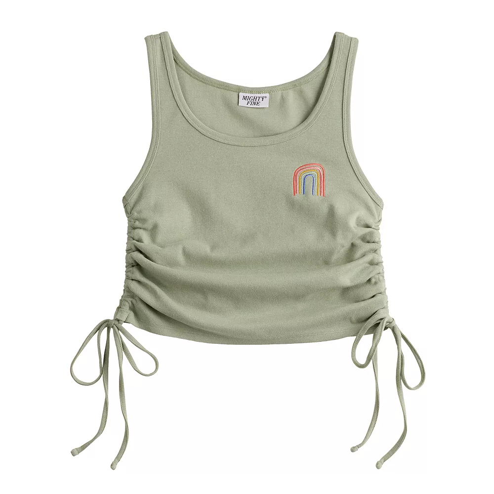 Juniors’ Rainbow Doodle Embroidered Side Cinch Tank Top