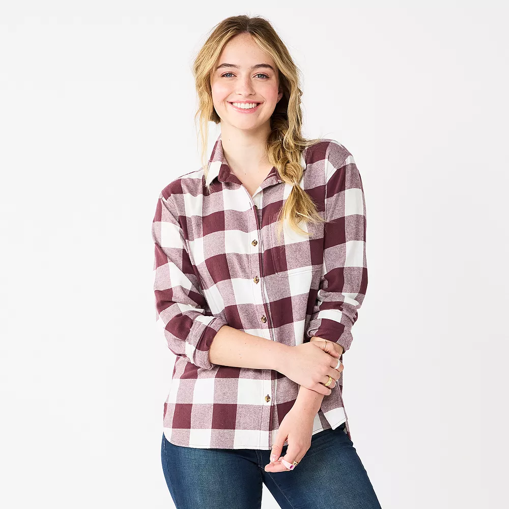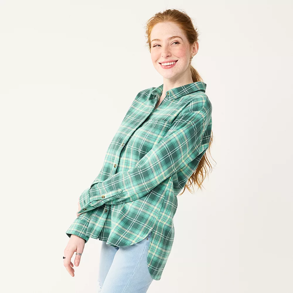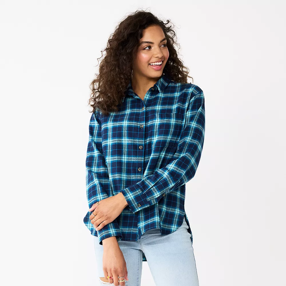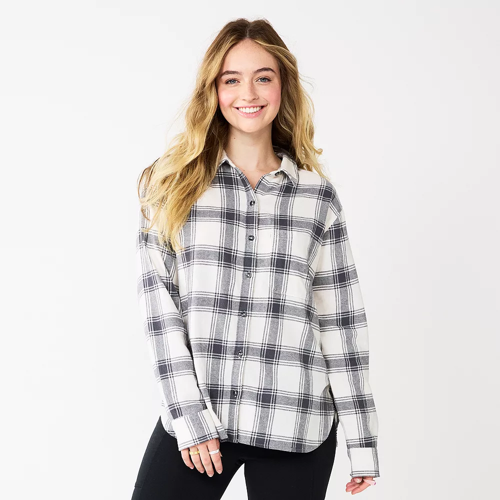 Embrace fall days in style when you rock this juniors’ flannel top from SO.