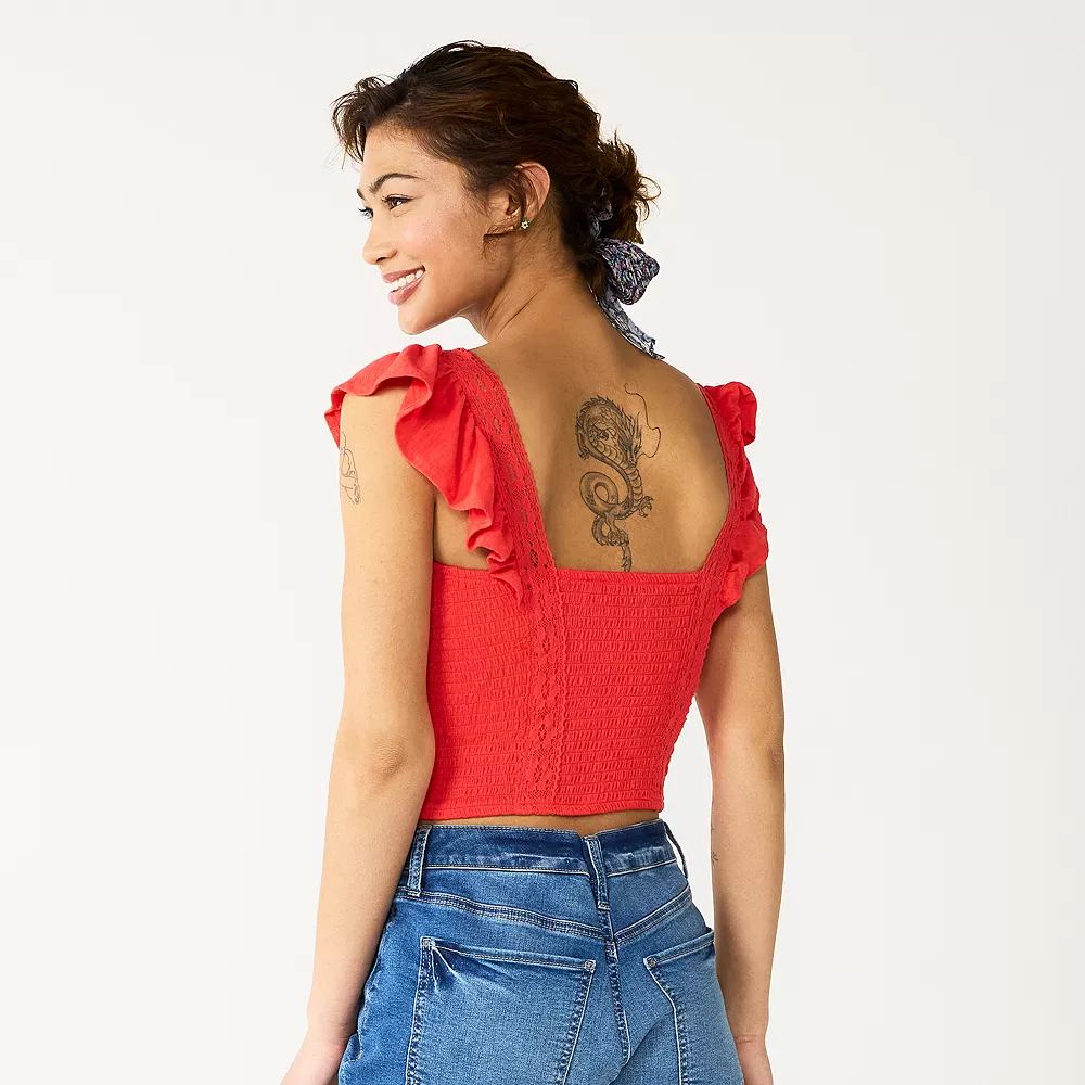 Beautify your basics with this juniors’ crochet trim tank top from SO.