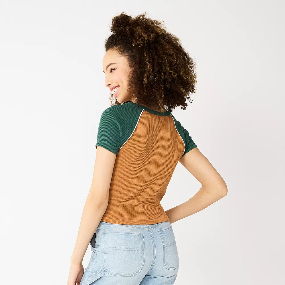 Dare to be different with this cropped raglan tee by SO.
