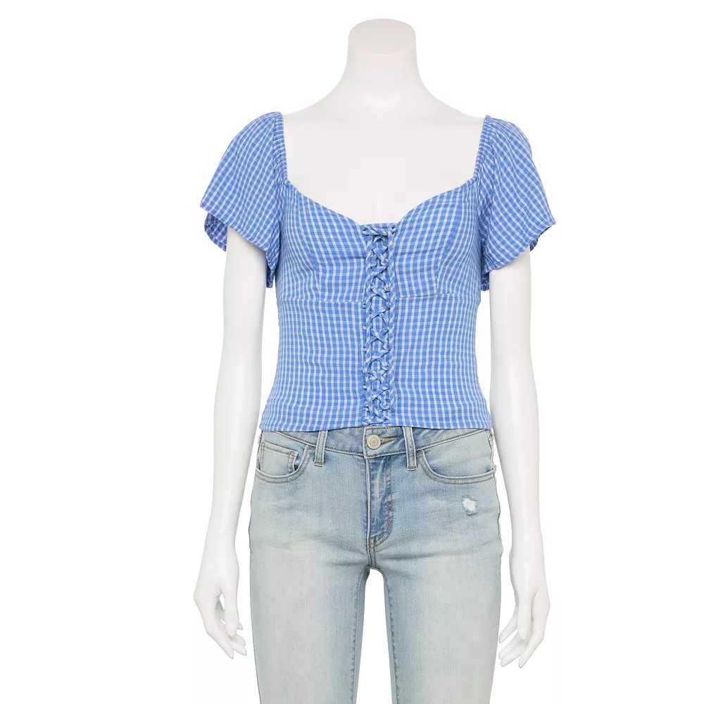This juniors’ cropped lace-up top from SO is the perfect addition to any wardrobe!