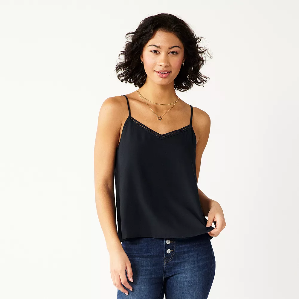 Update your basics with this juniors’ lace trim camisole by SO.