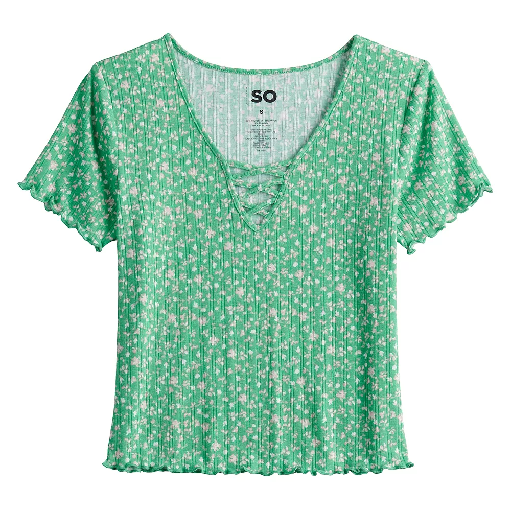 Fresh, fun and fashionable. This juniors’ lace-up short sleeve top is perfect for your casual wardrobe.