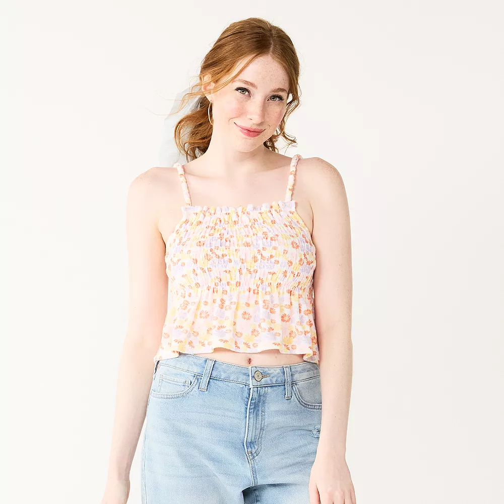 Designed with a cute ruffled hem and allover smocked detailing, this juniors’ tank top from SO is a wardrobe staple.