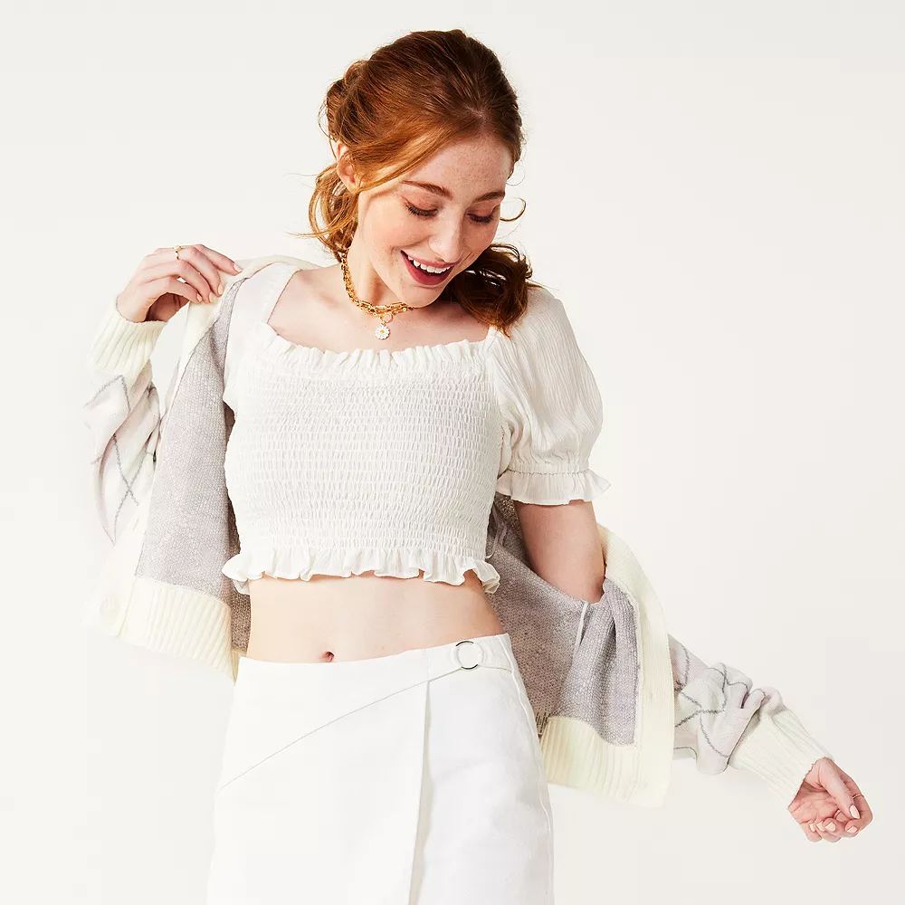 Piece together a look you’ll love with this chic juniors’ puffed short sleeve top from SO.