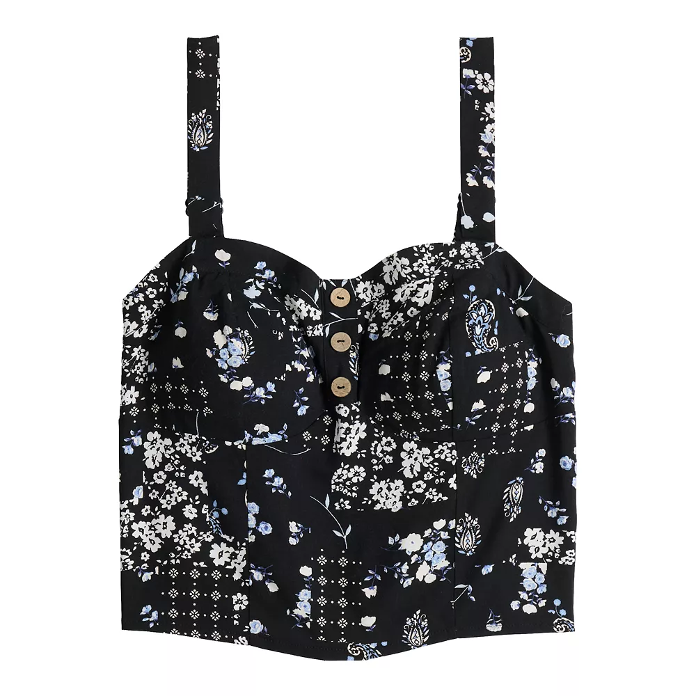This super cute juniors’ padded cup cropped tank from WallFlower is pure delight.