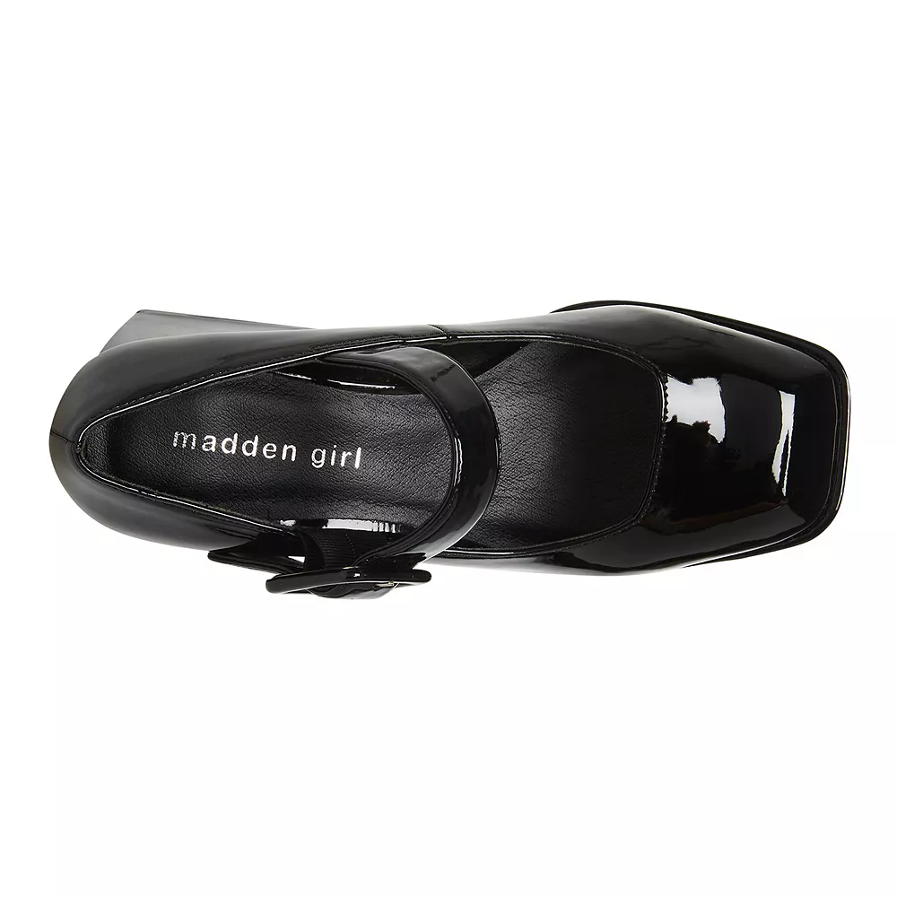 Showcase your trendy style wearing these women’s Girlie patent leather platform heels from madden girl.