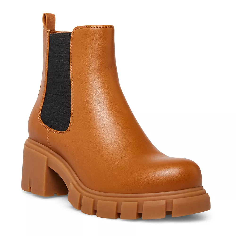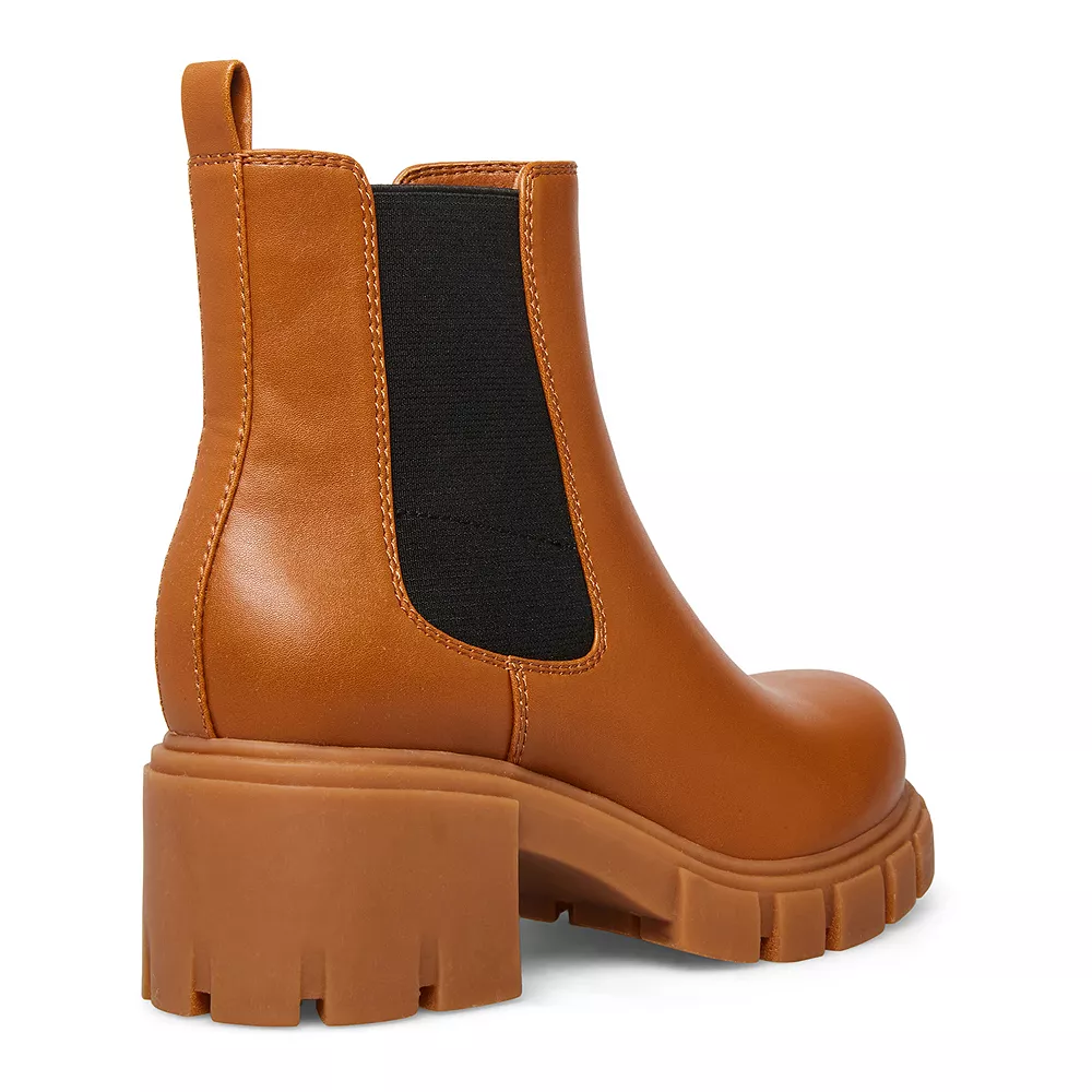 A chunky lug outsole adds a little edge to these madden girl Tessa women’s platform Chelsea boots.