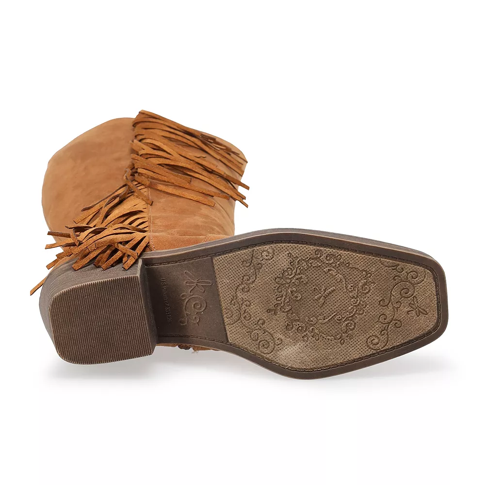 Step into a stylish western look with these SO Singalong women’s fringe knee-high boots.